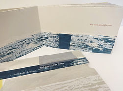 This book is bound in a unique gatefold format, with 2 spines. On the left, a small book with 7 tercet poems are letterpress printed. The right hand pages open to reveal 7 abstract images of winter. This book is a collaborative venture and is a reflection of the countless years staying the winters in Alaska and Minnesota.